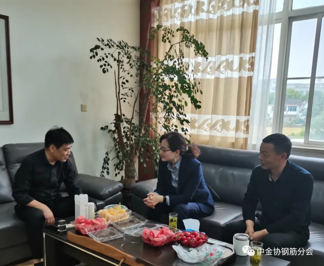 5月17日,中国金属材料流通协会副秘书长兼钢筋分会分会长李艳、秘书长助理孙京冈,与副会长单位建科机械(天津)股份有限公司销售总监吴志义一行,赴分会常务理事单位无锡华夏机械制造有限公司走访调研,与该公司总经理杨虎根就钢筋机械加工设备行业发展现状及趋势、企业需求、团体标准制定及专题论坛活动举办等进行了深入探讨,并听取了杨虎根对分会工作的意见和建议。