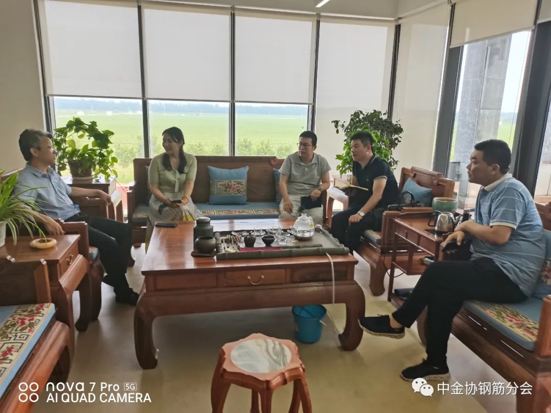 7月14日,中国金属材料流通协会钢筋分会秘书长助理孙京冈陪同分会常务副会长、河北敬业信德钢筋工程有限公司总经理崔锁卫一行,赴北京地区钢筋加工企业走访,分别与北京邢钢焊网科技发展有限责任公司总经理张伟、北京天辰恒正工贸有限公司总经理张红丽就钢筋集中加工配送与建筑钢筋焊接网生产发展现状、加工技术工艺提升及维护市场健康发展、避免企业之间恶性竞争等问题进行了深入探讨。