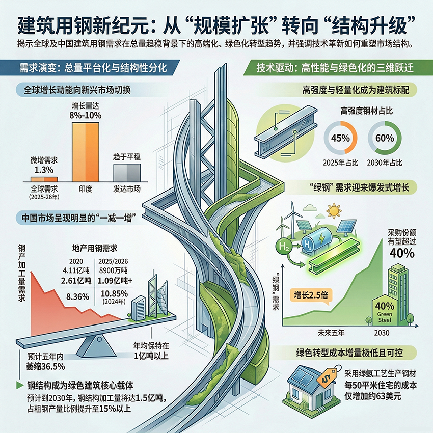 全球建筑用钢需求已进入明显的总量分化与内部结构调整期,其量化特征清晰可见。