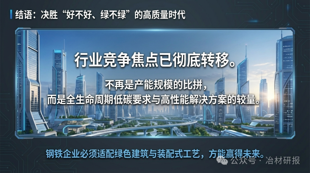 综上所述,建筑行业的技术与政策革新,正在全球范围内上演一场深刻的用钢需求变革。其本质是从满足“有没有”的粗放规模需求,转向满足“好不好、绿不绿”的高质量发展需求。对于钢铁企业而言,竞争焦点已从产能规模转向能否提供适配绿色建筑、装配式工艺和全生命周期低碳要求的高性能、高附加值钢材解决方案。