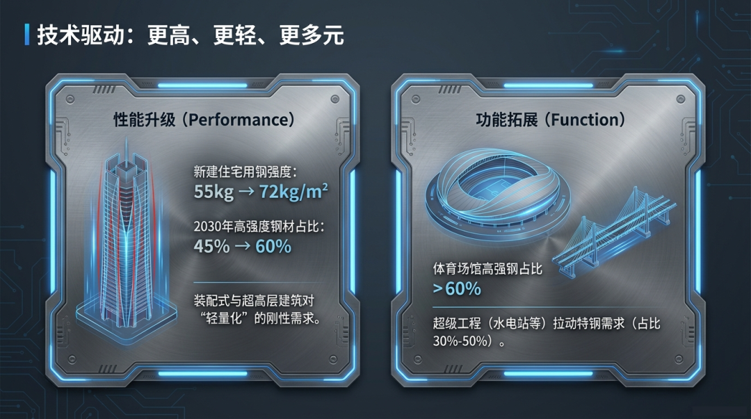 建筑行业的技术革新,尤其是绿色建筑与装配式建筑的普及,正从性能、功能和绿色三个维度系统性拉动高端钢材需求。
