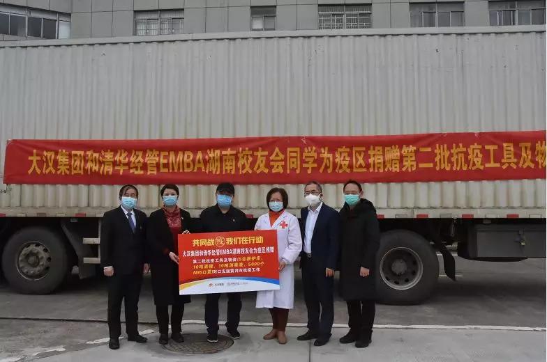 2020年2月13日上午,湖南省企业代表支援湖北黄冈防控疫情捐赠仪式在澳优乳业望城工业园举行。在此次捐赠仪式中,大汉集团对口黄冈市黄梅县捐赠了五辆救护车以及5000个N95口罩、10吨酒精、10吨84消毒液等抗疫工具和物资。大汉集团董事长傅胜龙和清华经管EMBA湖南校友会为黄梅县红十字会捐赠了价值五十余万元的救援物资。在捐赠仪式中,望城区委副书记、区长范焱斌盛赞望城区各企业在这次疫情中积极担当,勇于奉献,是湖南省本地企业的表率。