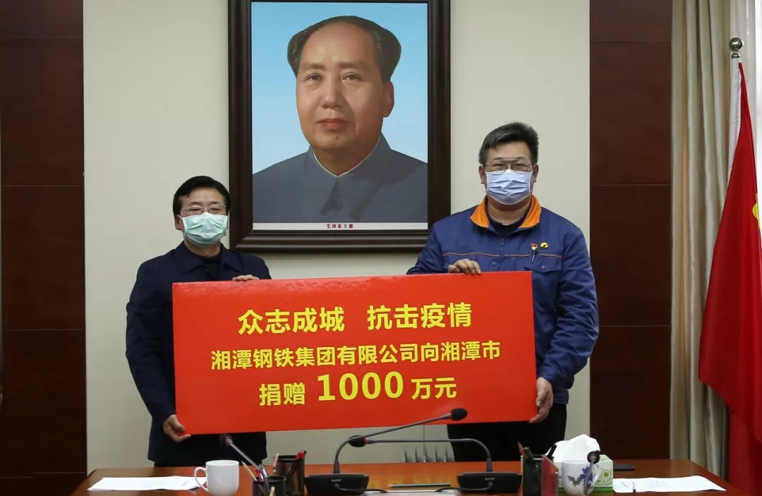 此前,了解到医疗机构面临医用物资匮乏,尤其是医用口罩、防护服急缺的情况后,华菱涟钢通过多方渠道紧急采购了12.7万只防护口罩、100套防护服,先后分别捐赠给红十字会、娄底市中心医院、娄底市第一人民医院等医疗机构。 华菱涟钢职工也自发为医疗机构捐钱捐物,提供力所能及的帮助。该公司210转炉厂连铸车间党支部组织党员向娄底市第一人民医院捐赠一万余元;一炼轧厂行车车间共产党员李从军、人力资源服务公司职工曾力多方寻找资源,先后购买了320套防护服分别捐赠给娄底市中心医院和娄底市第一人民医院。 当前,全国疫情防控工作已进入关键时期,形势依然严峻?!罢飧鍪焙颍颐怯Ω玫5笔姑?,履行好自己的责任!”在简单的捐赠仪式上,涟钢集团副总经理、工会主席汪庆祝如是说。 华菱湘钢 2月14日,华菱湘钢向湘潭市防疫办公室捐赠现金1000万元,全力支持湘潭市疫情防控工作。