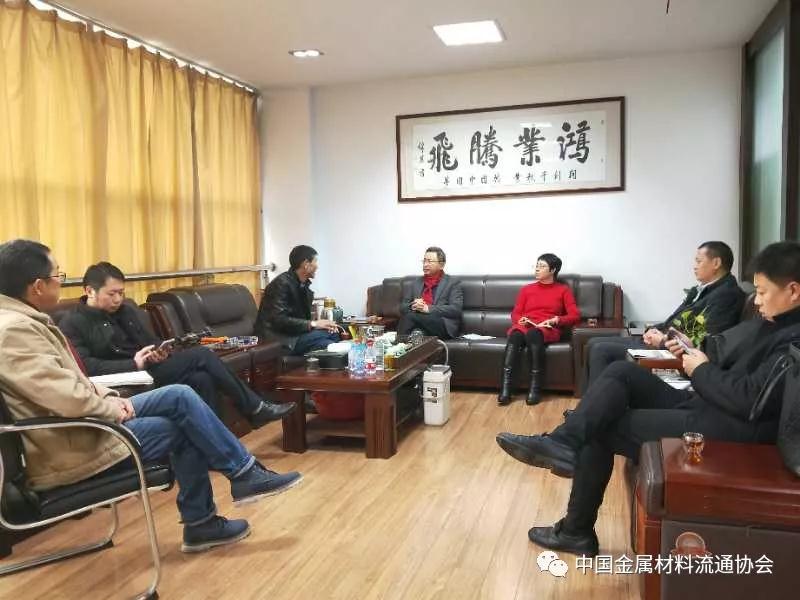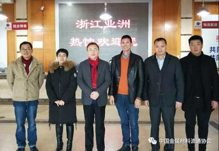 2018年1月8日,中国金属材料流通协会副会长兼秘书长、优特钢专委会名誉会长陈雷鸣,优特钢专委会秘书长杨敏,优特钢专委会副会长单位、沙钢集团淮钢特钢股份有限公司销售处副处长穆强,优特钢专委会副秘书长、江苏大经集团有限公司副总裁陈春忠一行,应邀赴优特钢专委会会员企业、浙江业洲供应链管理有限公司走访调研,与该公司总经理曾水平、常务副总经理胡奇俊等高层领导就汽摩配件生产与市场现状及优特钢行业发展等问题进行了深入交流。